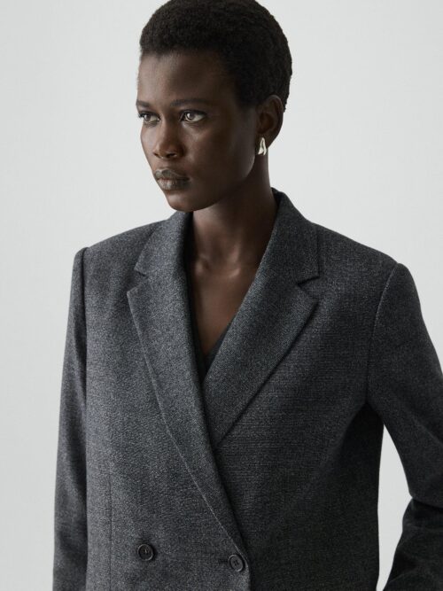 Relaxed Double-Breasted Blazer in Marled Flannel