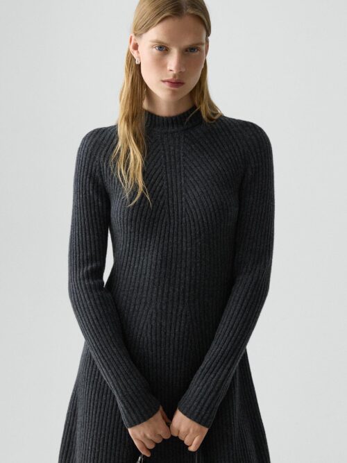 Ribbed Sweater Dress in Felted Wool-Cashmere