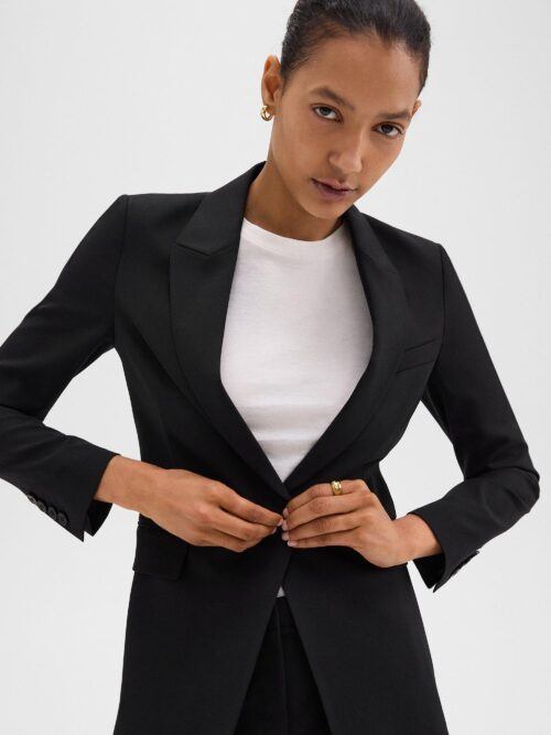 Tailored for a slim fit, this cropped, fully lined vest overlaps at the front with a hook-and-eye closure for the look of a double-breasted silhouette. It’s crafted with extremely fine Good Wool for a soft-hand feel and beautiful drape. Theory for Good Theory??s Good Wool is crafted with premium merino wool. It??s sourced from certified responsibly managed farms in Australia, and woven by the Tollegno 1900 mill in Biella, Italy. Learn more about our Good Wool. Style #: P0701101