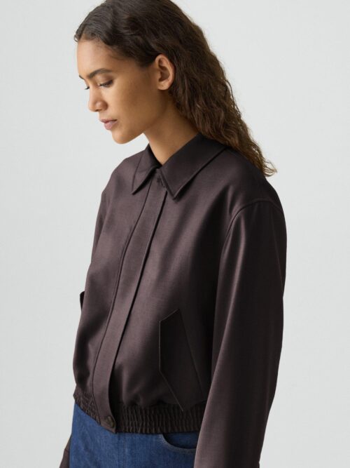 Cropped Track Jacket in Wool-Blend Flannel